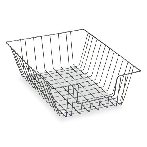 Wire Tray with contemporary design that organizes documents and files. Stack trays with posts, sold separately. Steel tray is 100% recyclable. 12"w x 16 1/2"d x 5"h. Number of Compartments: 1; For File Size: Legal; Load Orientation: Front; Color(s): Black.